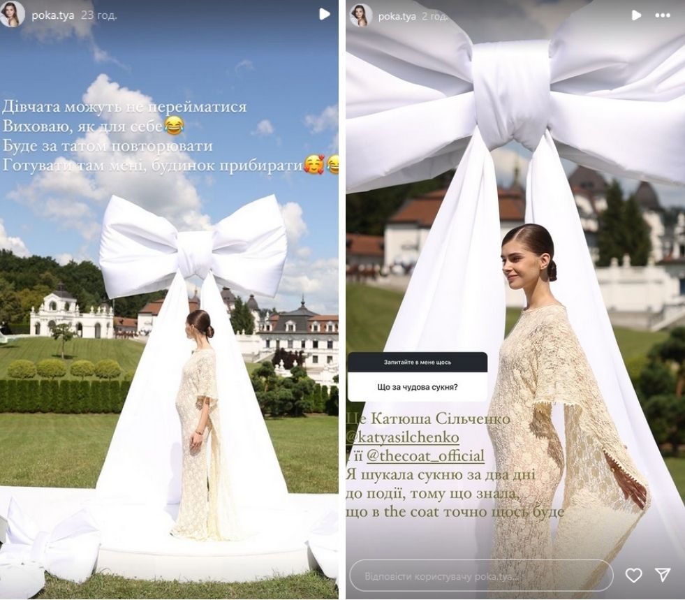 Як зізналася Полтавська, образ для гендер-паті вона вибирала за два дні до події. Катерина, яка є шанувальницею the COAT, одразу поїхала у шоурум бренду, адже знала, що там точно підбере для себе відповідну сукню.