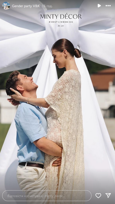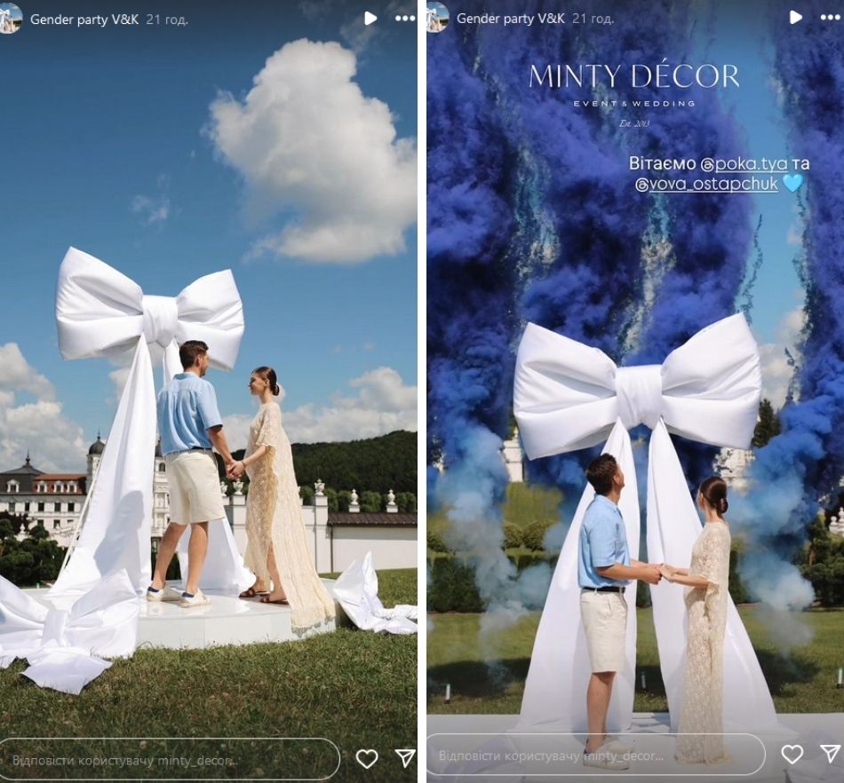 Трепетна подія відбулася на красивій локації у заміському комплексі на Львівщині, де напередодні Остапчук мав робочий захід. Стиль маленького свята розробляла студія декору і флористики Minty Decor з Чернівців, а авторкою ніжного образу майбутньої мами стала українська дизайнерка Катя Сільченко, засновниця бренду the COAT.