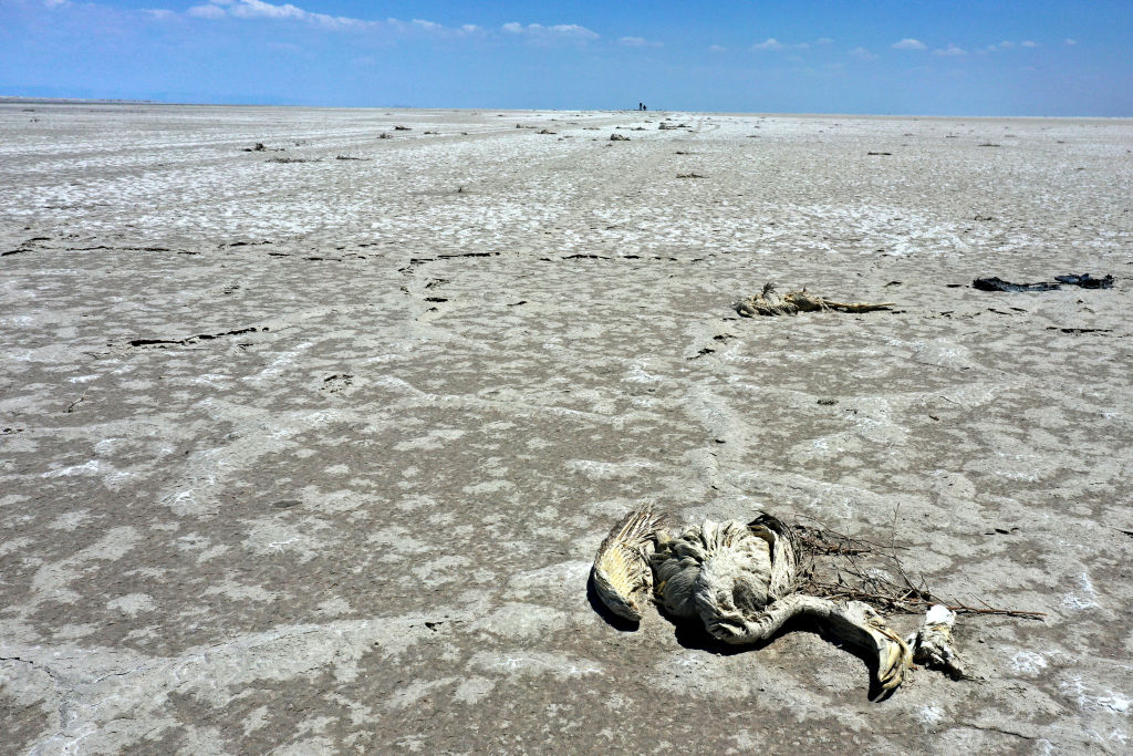 На турецькому озері Туз за останні два тижні посуха вбила тисячі дитинчат фламінго. На фото потрапили поховані в сухому бруді рештки птахів, які не змогли дістатися до води.