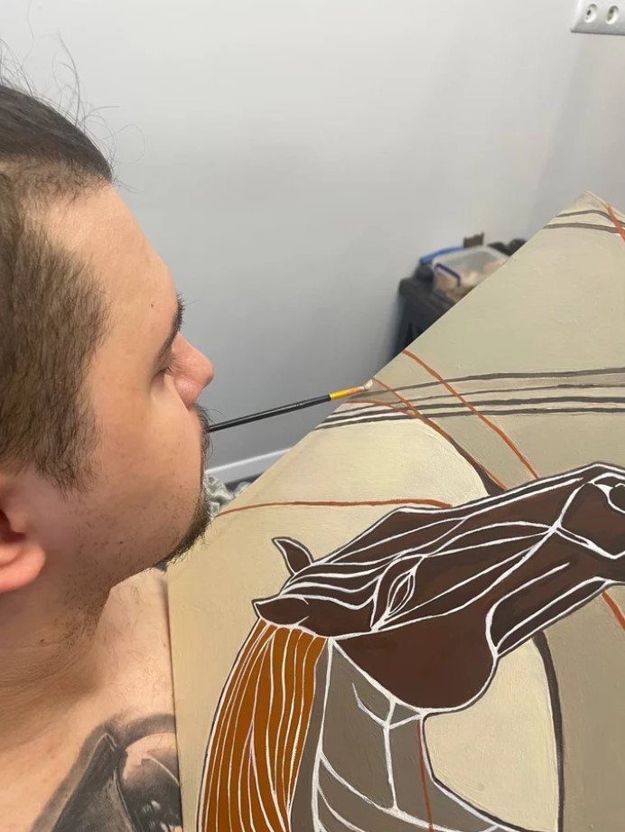 У межах запуску цієї колекції Lady Di atelier розповіли про свого нового автора – Максима Калінчука, який малює, тримаючи пензлик у зубах. Його шлях у мистецтві почався після того, як травма шийного хребця змінила його життя назавжди.