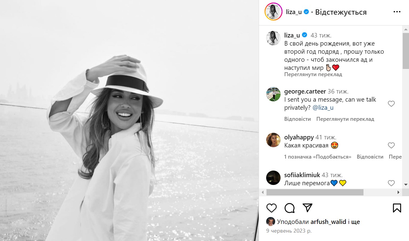 Напередодні цього, 24 лютого 2022 року, на сторінці жінки в Instagram з'явилася картинка у кольорах українського прапора та напис "Stop war in Ukraine". На цьому всі її намагання "висловити" позицію та стати на захист батьківщини закінчилися.