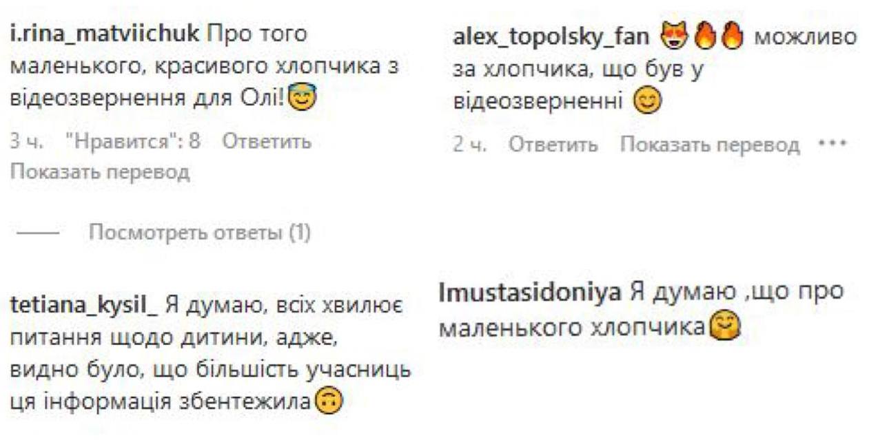 Шанувальники шоу припустили, що йдеться про хлопчика, якого показали у першому епізоді. Учасниці "Холостяка-12" вирішили, що Топольський має сина, про якого він промовчав.