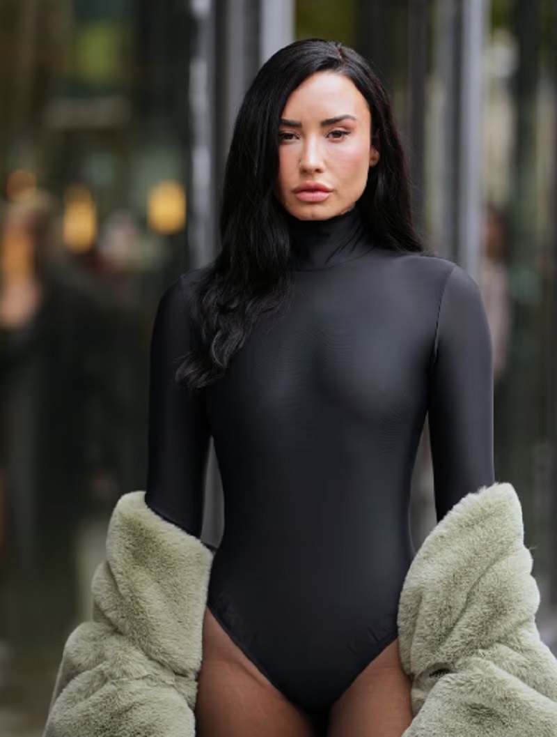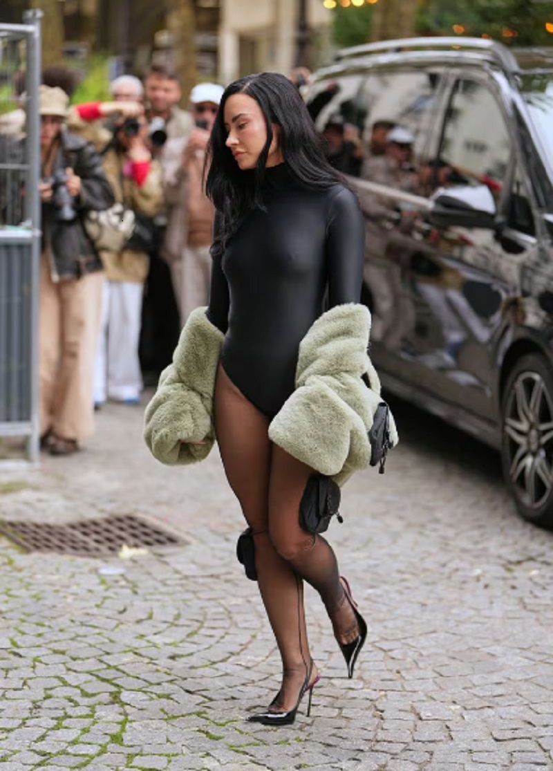 На Тижні моди в Парижі засвітилася американська акторка Демі Ловато у незвичному образі. Вона прийшла на подію без штанів, а точніше у чорному боді.