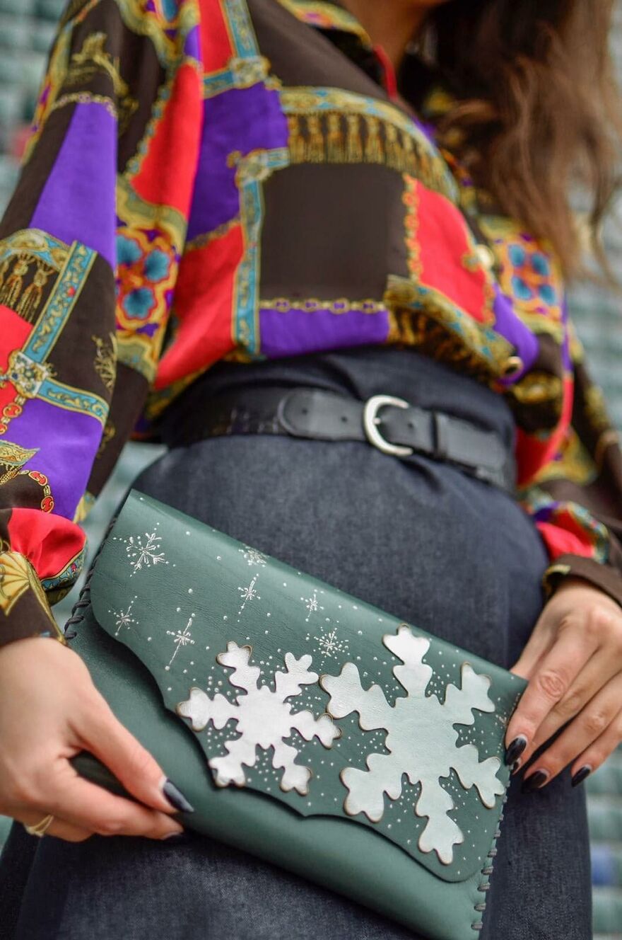 Вироби зі шкіри дівчина почала створювати ще в 2013 році, і з тих пір її роботами захоплюються майже 10 тисяч фоловерів в Instagram. При створенні аксесуарів дизайнер використовує техніки 3D та колажу. З наближенням зими Роксана вирішила створити колекцію клатчей, які ідеально впишуться в святковий образ кожної модниці.