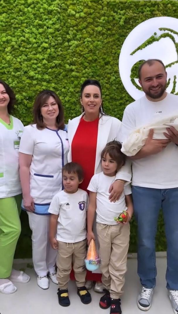 Так, у своєму блозі в Instagram виконавиця поділилася сімейними кадрами. На них вона позувала з новонародженим сином Алімом, чоловіком Бекіром Сулеймановим та двома старшими синами. Можна помітити, як щасливий багатодітний батько заколисує новонародженого під час фотосесії, у той час як артистка спілкується з лікарями та дякує їм за турботу. Старші діти подружжя граються іграшками та позують перед об'єктивом.