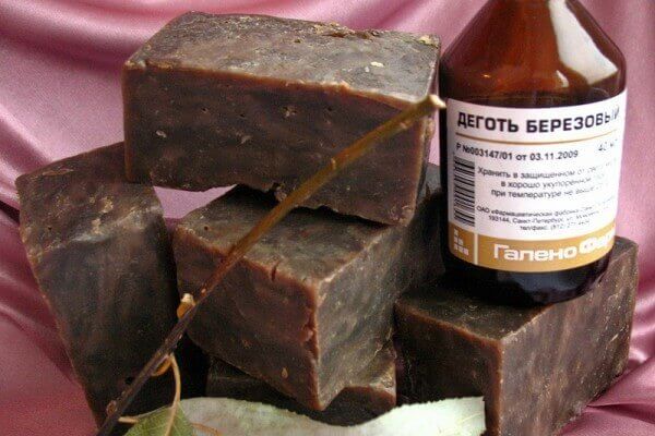 Як відомо, дігтярне мило містить березовий дьоготь. Воно має бактерицидні та протизапальні властивості.