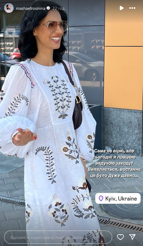 На особистій сторінці в Instagram Марія опублікувала коротке відео з івенту і зібрала компліменти підписників. Єфросиніна вдягла білу лляну сукню, декоровану контрастною вишивкою.