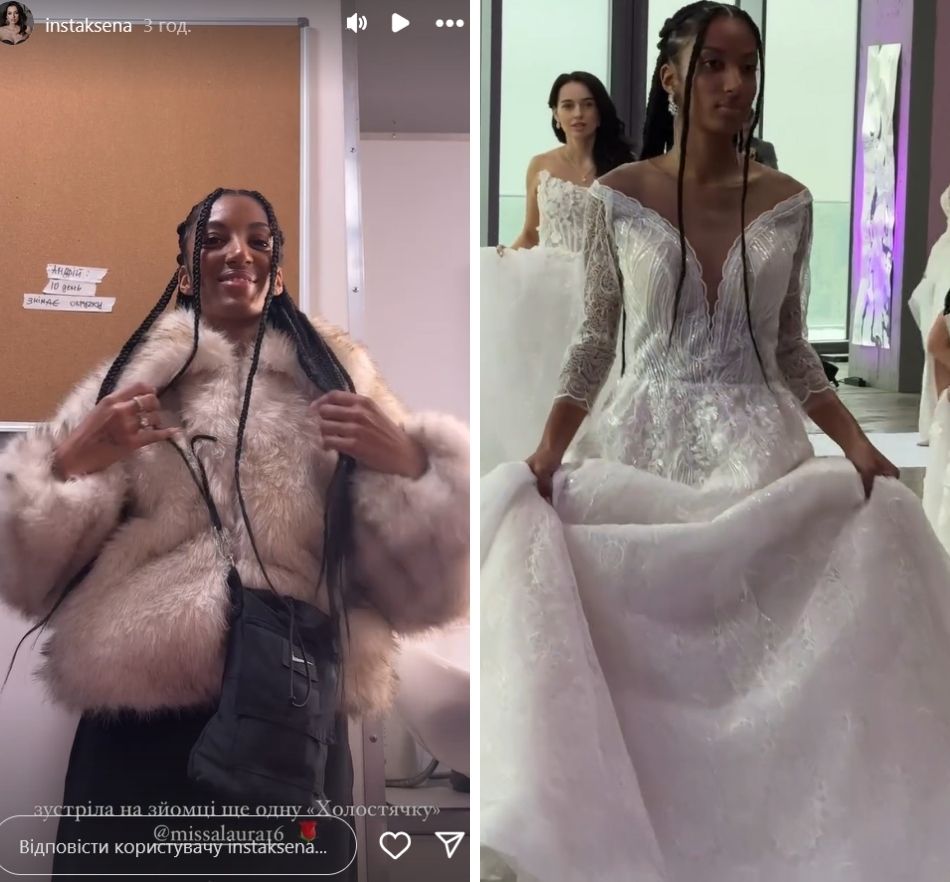 На інших світлинах Ксенія зоображена біля знімального павільйону, на гримі та у весільній сукні. Ймовірно, героїня Щербач буде нареченою або моделлю.
