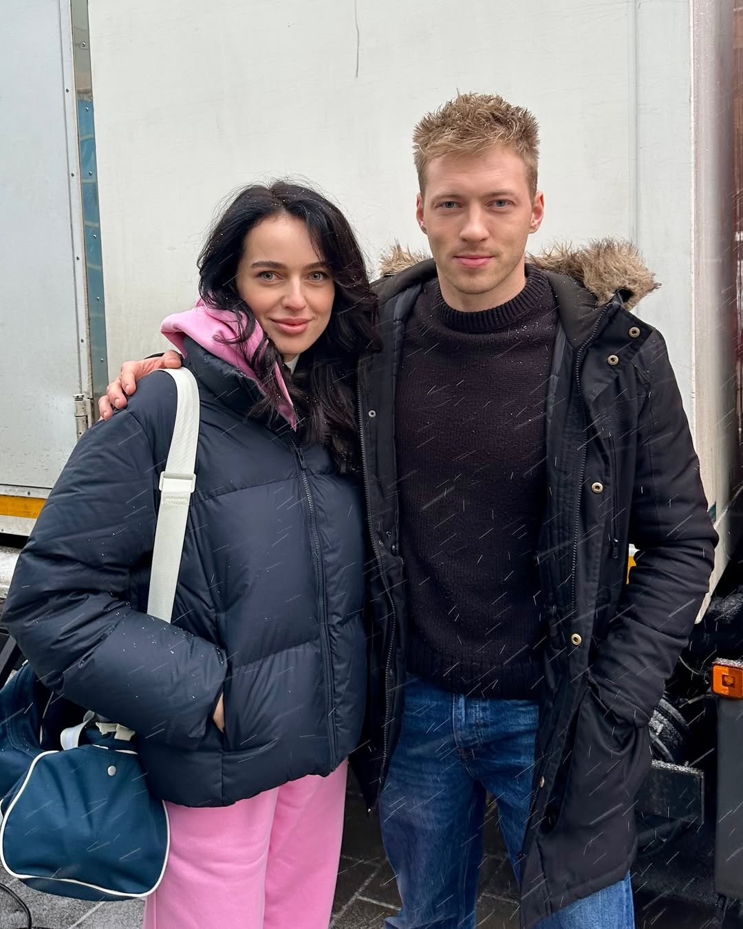 На особистій сторінці в Instagram дівчина показала серію фото зі зйомок, на одному з яких позує, обійнявшись з актором Григорієм Баклановим, який полюбився глядачам по ролі Лавріна в серіалі "Спіймати Кайдаша".