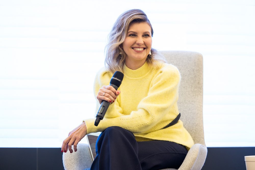 Фотографії із заходу дружина Володимира Зеленського опублікувала в Instagram. Для спілкування зі студентами перша леді обрала жовтий светр із оригінальними рукавами, який поєднала із чорним ремінцем – у тон брюкам. Свій стильний образ Зеленська доповнила туфлями-човниками на невисоких підборах та легкою укладкою.