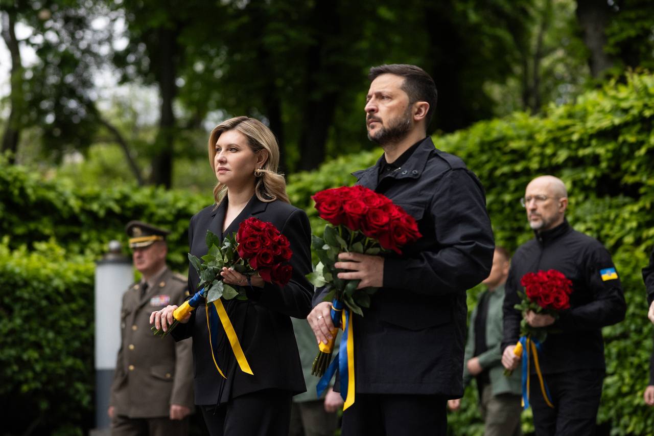 8 травня в День пам'яті та перемоги над нацизмом у Другій світовій війні президент і перша леді України поклали квіти до могили Невідомого солдата у Києві. Для вшанування пам'яті полеглих Олена Зеленська вибрала монохромний образ чорного кольору.