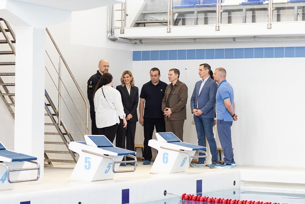 Також перша леді України відвідала ще один безбар'єрний простір - басейн місцевого спорткомплексу Вінницької міської ради, де можна зійти у воду, щоб поплавати, просто з колісного крісла.
