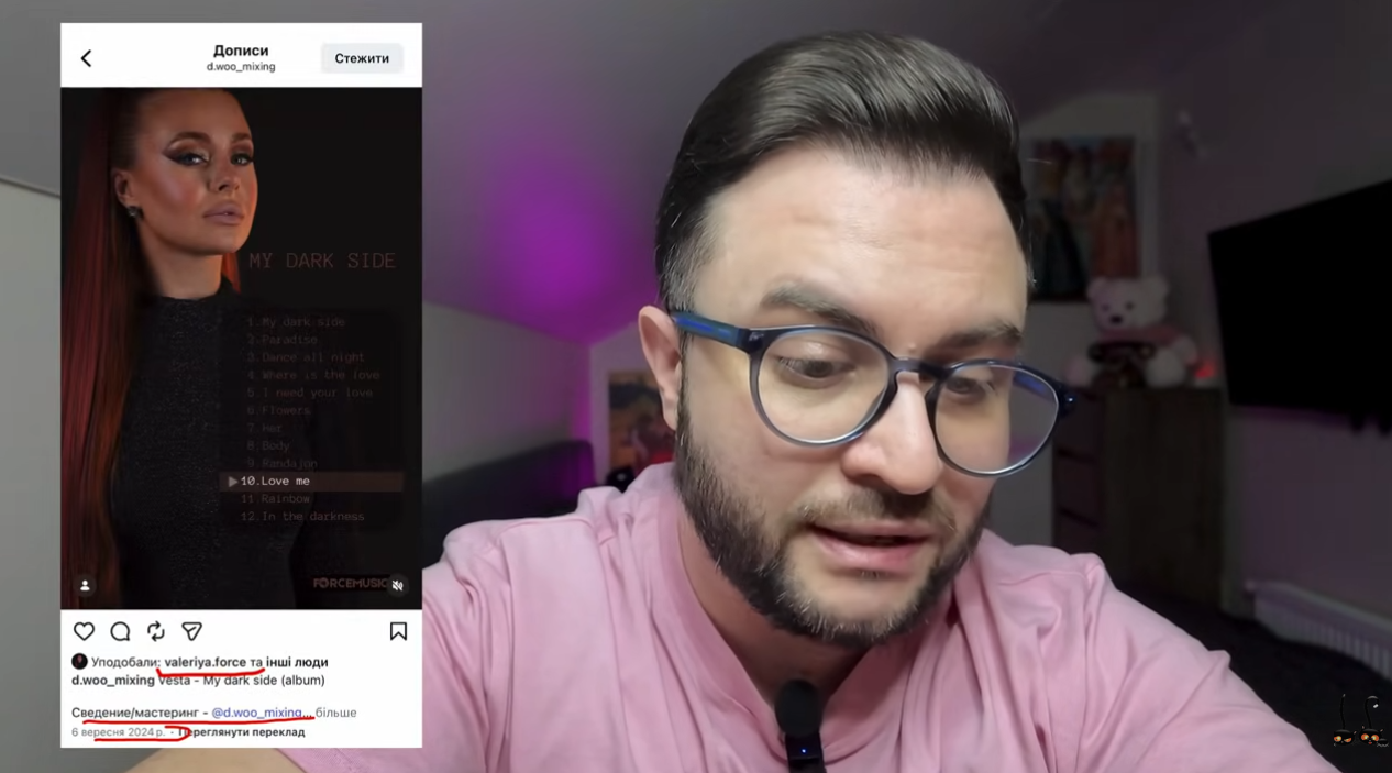 На це звернув увагу блогер-пліткар Богдан Беспалов у новому відео на своєму YouTube-каналі BespaLOVmood. За інформацією однієї з його інсайдерок, у 2024 році Валерія співпрацювала з D.Woo, який, згідно з відкритими даними з його соцмереж, проживає в Москві та працює з російськими артистами, що або замовчують агресію Росії проти України, або відкрито її підтримують.