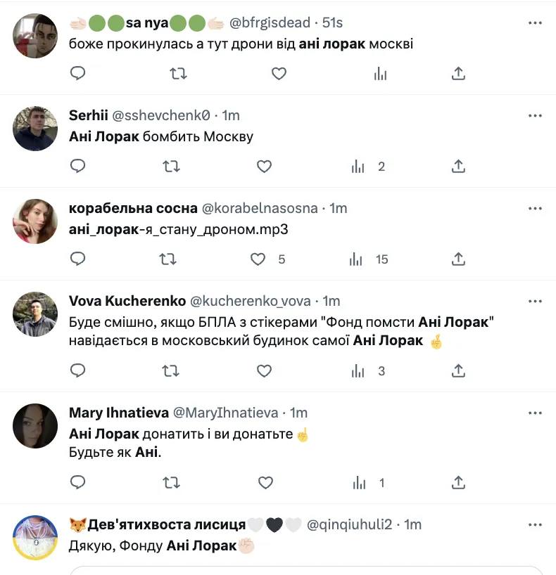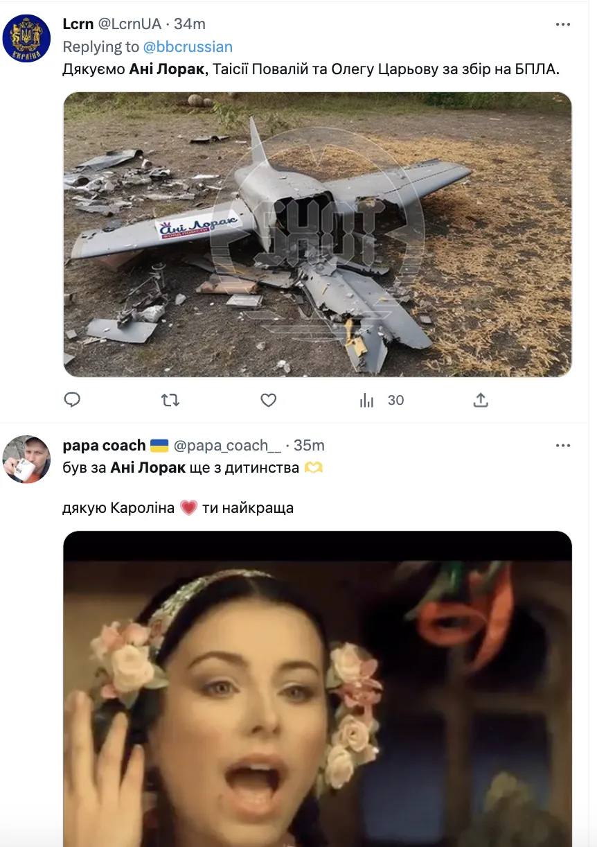 Пост з безпілотником також підхопили українці. Вони жартома "подякували" фонду артистки-зрадниці. На додачу "вдячні" користувачі мережі розхвалили й інших путіністів – Філіпа Кіркорова, Таїсію Повалій та навіть Олега Царьова.