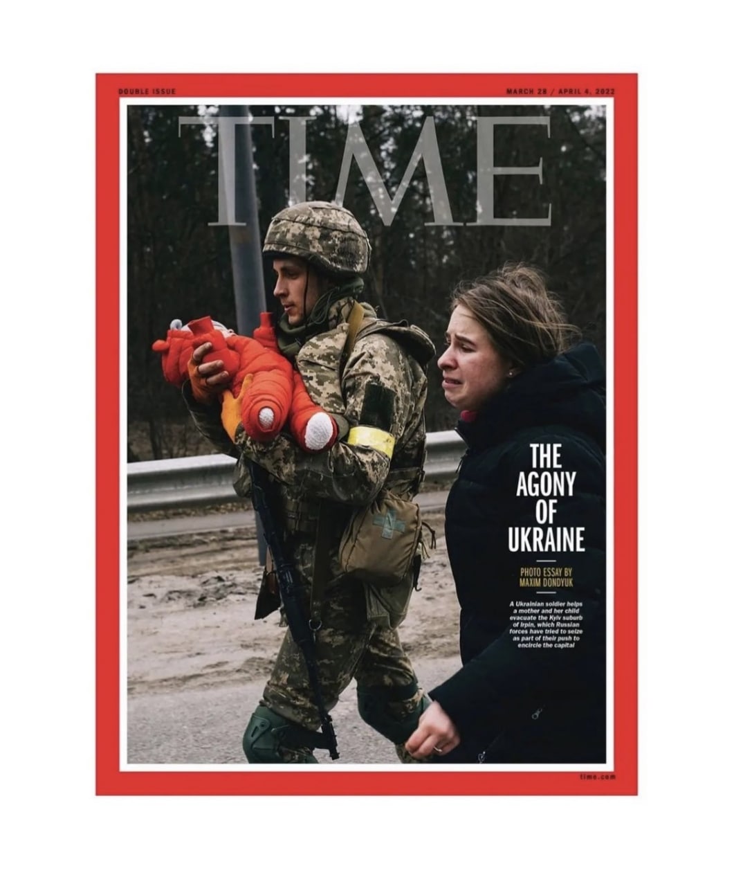 На щастя, з Ірпеня вдалось організувати евакуацію людей. Саме в цей момент був зроблений зворушливий знімок, який облетів весь світ і навіть потрапив на обкладинку журналу Time.