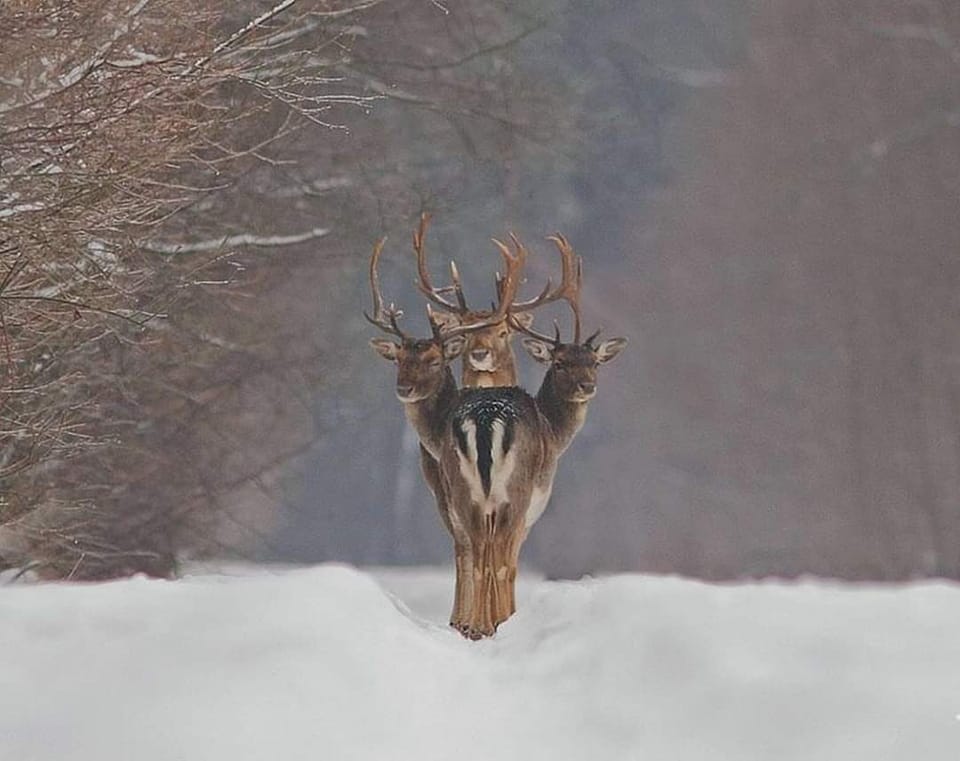 Дивовижний кадр – не Photoshop, а випадкова сцена, яку захопив чоловік. І хоча триголового оленя не існує, такі моменти у фотографії захоплюють уяву.