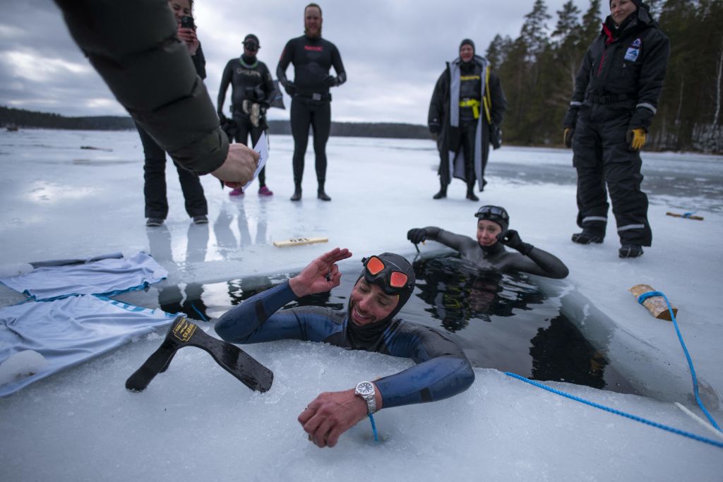36-річний спортсмен пірнув у замерзле озеро Соннанен у Фінляндії і на одному диханні подолав 120 метрів. Одягнений в один лише гідрокостюм, він завершив свій заплив за 3 хвилини. "Був страх, занепокоєння, але це був розрахований ризик, до якого я був готовий", - сказав Герен-Боері.