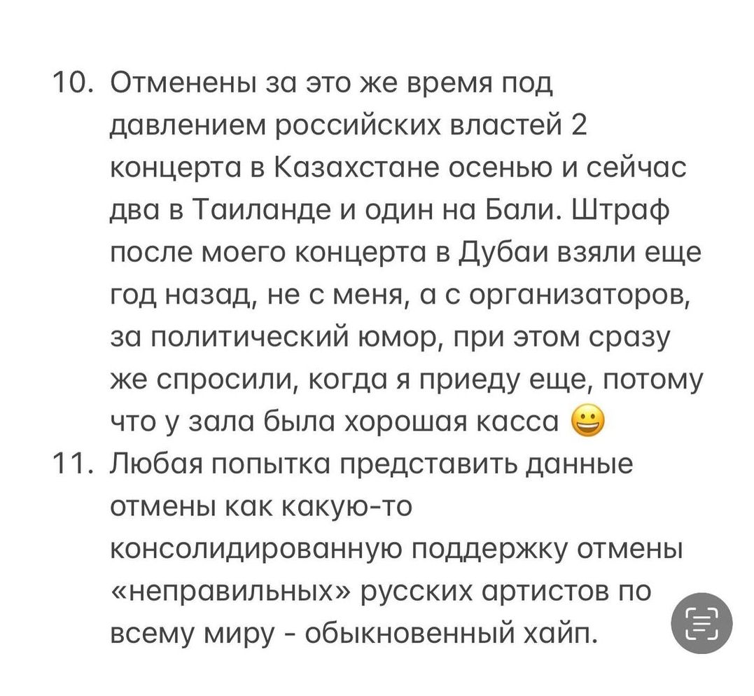 Також, за словами Галкіна, восени 2023 року під тиском російської влади було скасовано два його концерти в Казахстані.