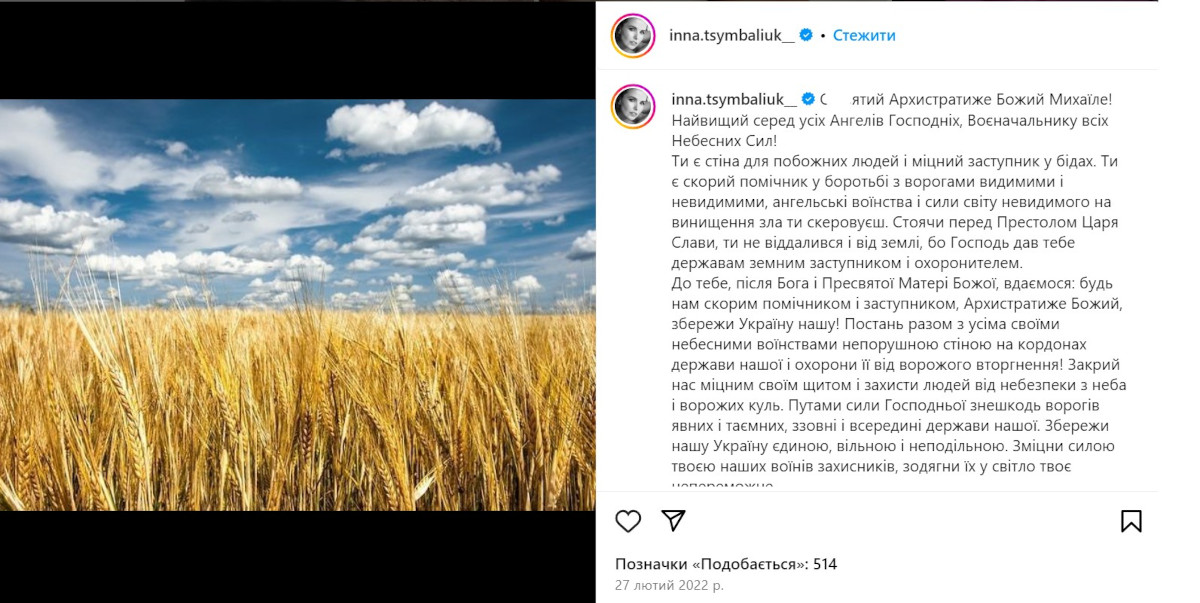 "Молімося разом! Спільна молитва здатна відвернути загрозу і подолати всяке зло", - йшлося у її першій та останній публікації, що опосередковано стосувалася війни.