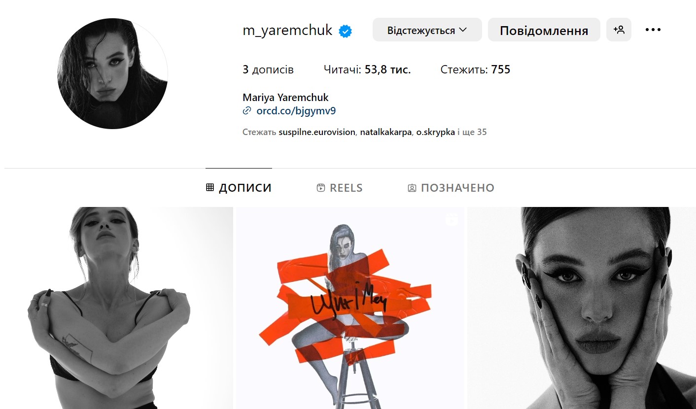 Наразі ж, як можна побачити, на сторінці виконавиці в Instagram, лише кілька публікацій: дві із них присвячені виходу пісні "Щит і меч", інша - стосується думки співачки про сцену, про що вже згадувалося вище.