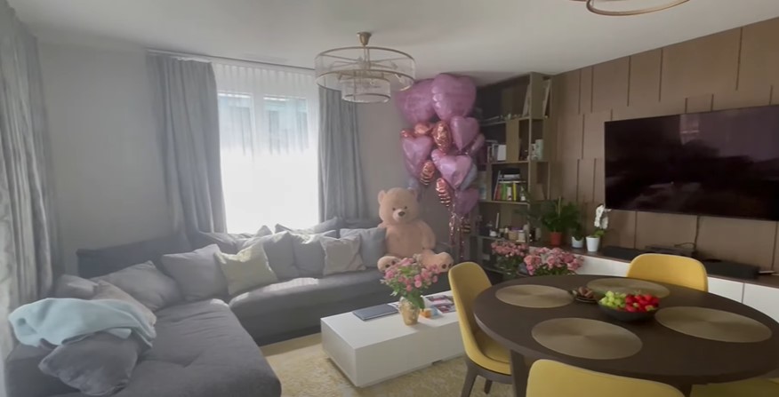 В інтерв'ю для YouTube каналу "Серцем ЮА" Онуфрійчук показала власну швейцарську квартиру, в якій мешкає разом із Алмазом: