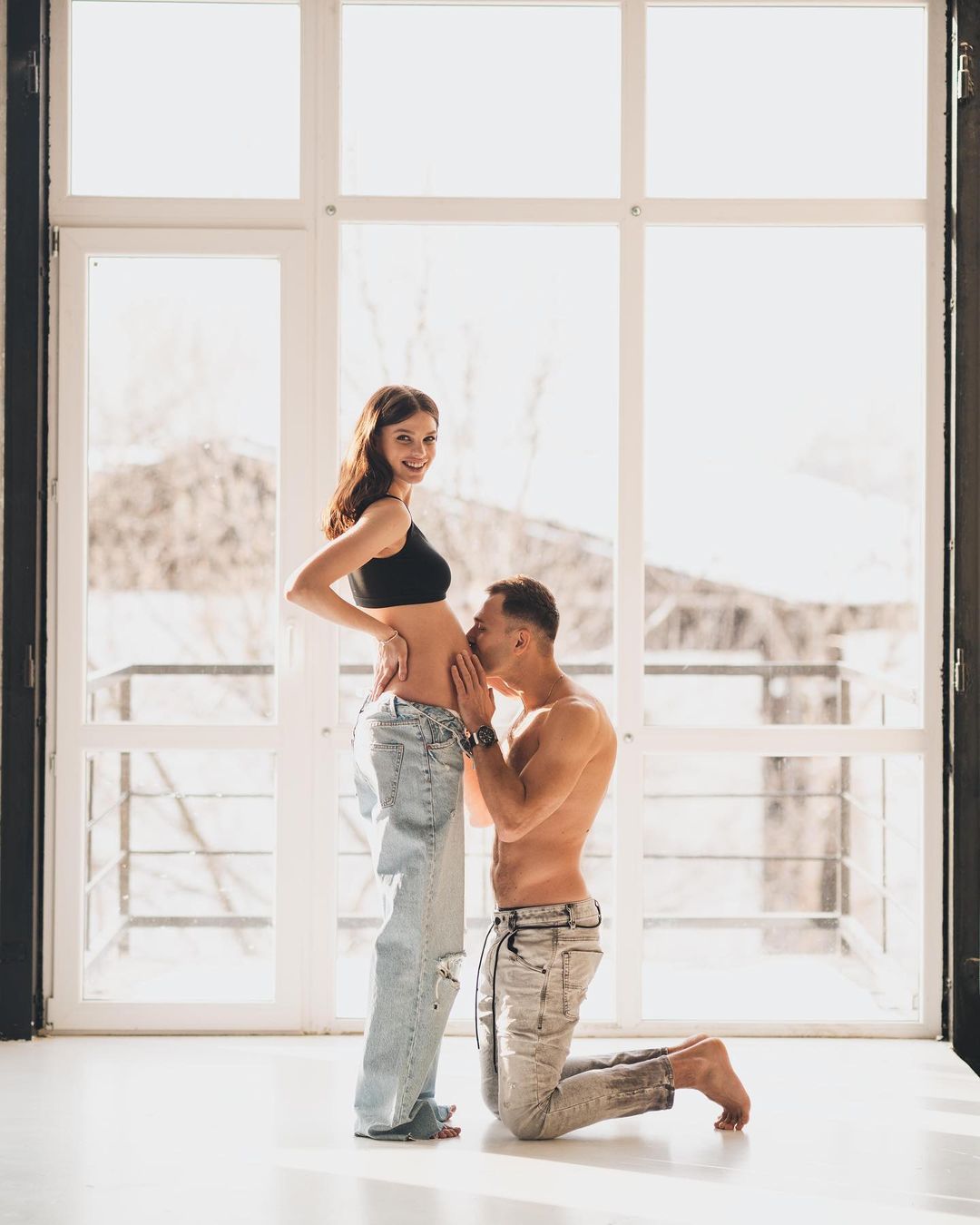 Приємною новиною пара поділилася на своїх іnstagram-сторінках. Закохані опублікували зворушливі кадри з романтичної фотосесії, на яких помітний значний животик. "Кожен день наближає до зустрічі з ще однією любов'ю всього мого життя", - написав Михайлюк.