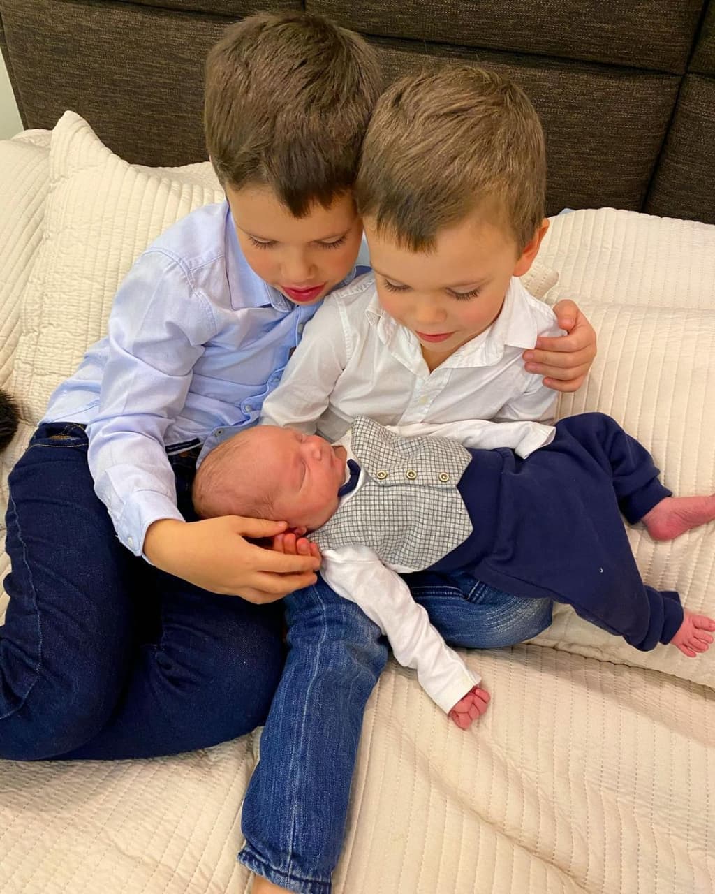 Також у фотоблозі дружини ведучого з'явилися фотографії, на яких маленький Сашко знайомиться зі старшими братами – 8-річним Іваном та 4-річним Дмитром.