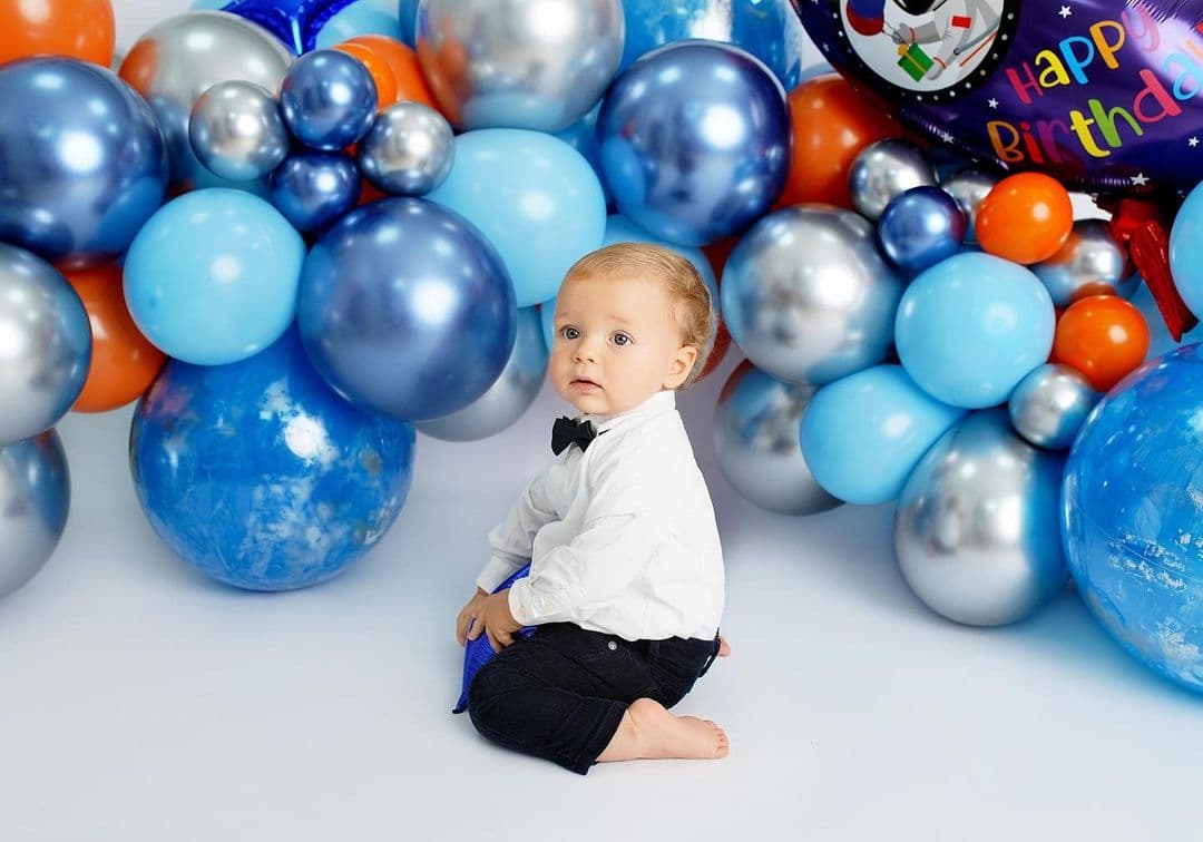 "Сашуні один рік! З Днем народження, наше маленьке янголятко! Синку, дуже сильно тебе любимо і зацілуємо. Будь щасливий і здоровий, а ми будемо радіти твоїм успіхам, звершенням і завжди підтримуватимемо", - підписав Григорій серію світлин, на яких малюк у смішному костюмі астронавта позує на тлі повітряних куль.