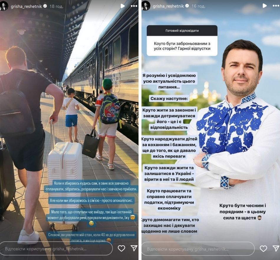 На особистій сторінці в Instagram ведучий "Холостяка", який має трьох малолітніх дітей, опублікував кадри з вокзалу та розповів про початок літніх канікул. Решетнік поділився складнощами сімейних зборів, а у відповідь отримав хейт. "Круто бути заброньованим з усіх боків? Гарної відпустки", - дорікнув телеведучому один з підписників.