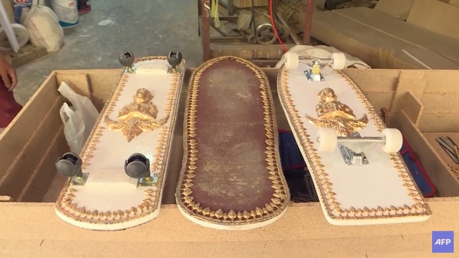 Короткий репортаж про вироби трунаря вийшов на каналі AFP News Agency в YouTube. Як розповів на відео чоловік, робити дошки для скейтбордингу виявилося не важче, ніж труни. Інша справа, що попит серед місцевої молоді поки не такий великий.
