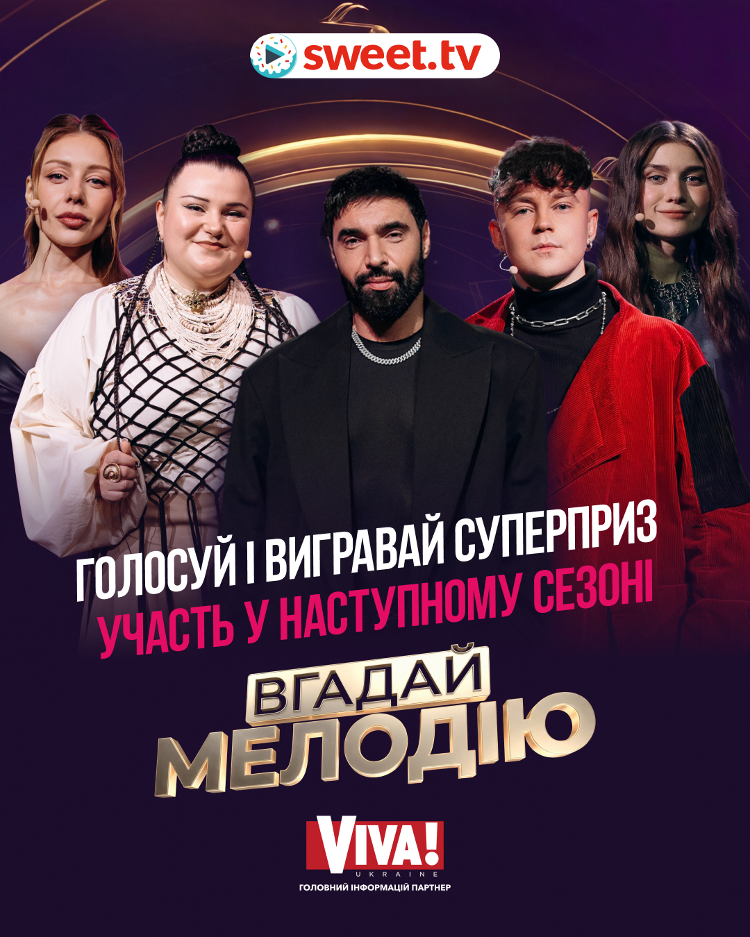 Онлайн-кінотеатр SWEET.TV запускає масштабне глядацьке голосування за улюблену зірку шоу "Вгадай мелодію". Відтепер кожен глядач може не лише підтримати свого фаворита, а й взяти участь у зйомках другого сезону проєкту та позмагатись з найпопулярнішими українськими зірками на одній сцені.
