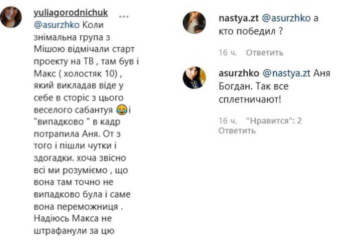 Фоловери також стали обговорювати, кого він міг вибрати у фіналі і зійшлися на думці, що Анну Богдан, колишню дружину екс-глави Офісу президента Андрія Богдана. Кажуть, що нібито торішній Холостяк Макс Михайлюк "злив" переможницю.