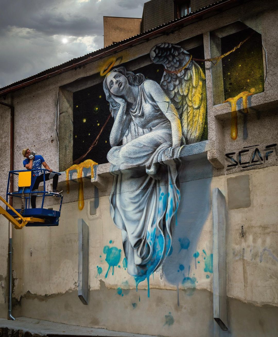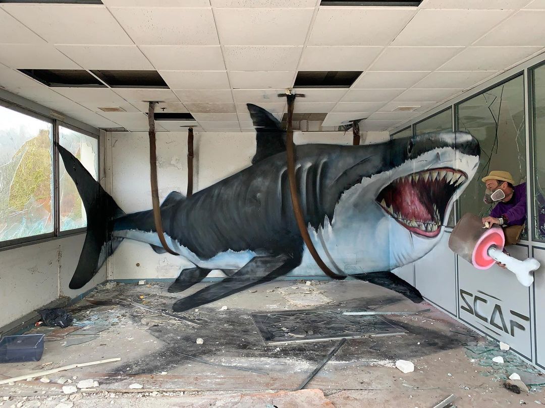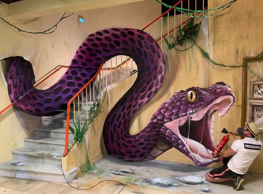 Вуличний художник з Франції з ніком SCAF любить малювати в занедбаних місцях, перетворюючи стіни на щось дивовижне. Його 3D-малюнки виглядають реалістично та навіть лякають, адже хлопець зображує драконів, змій, павуків та навіть привидів.