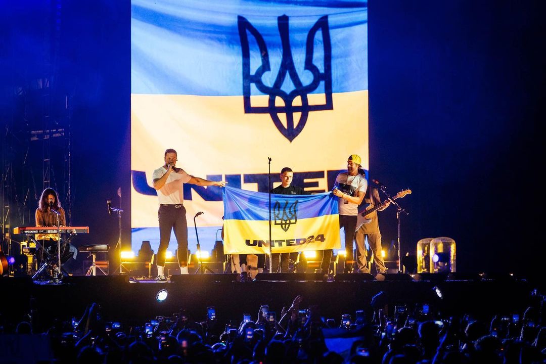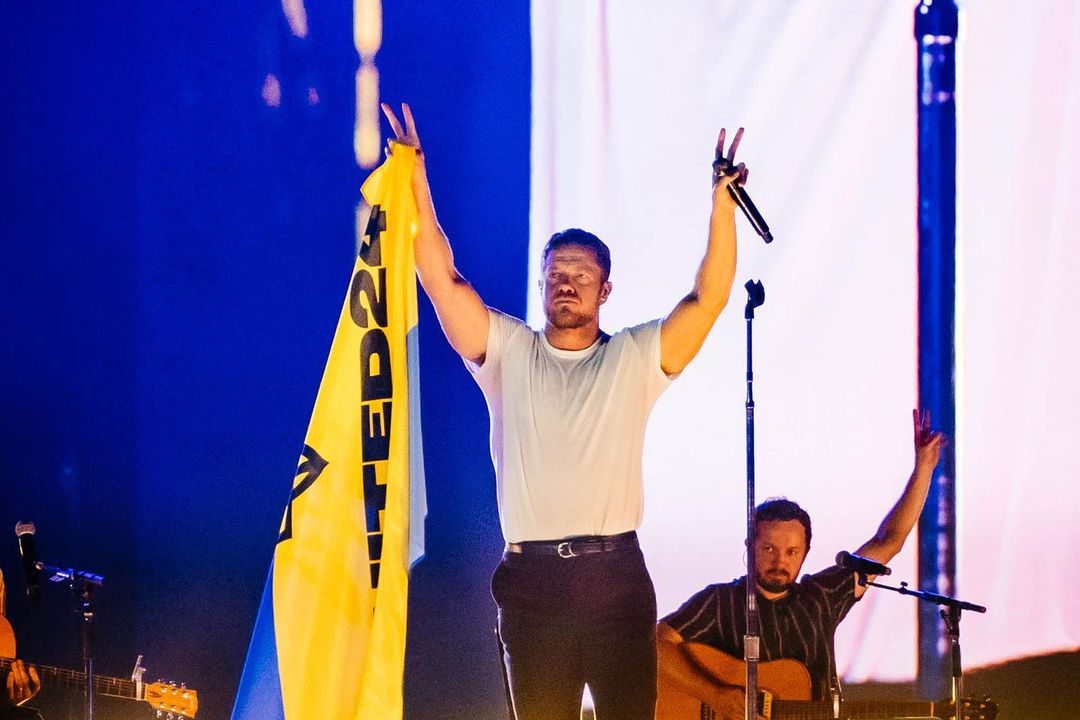 Ден Рейнольдс підтримує Україну з перших днів російського вторгнення. У червні минулого року на концерті Imagine Dragons у Празі співак підняв український прапор.