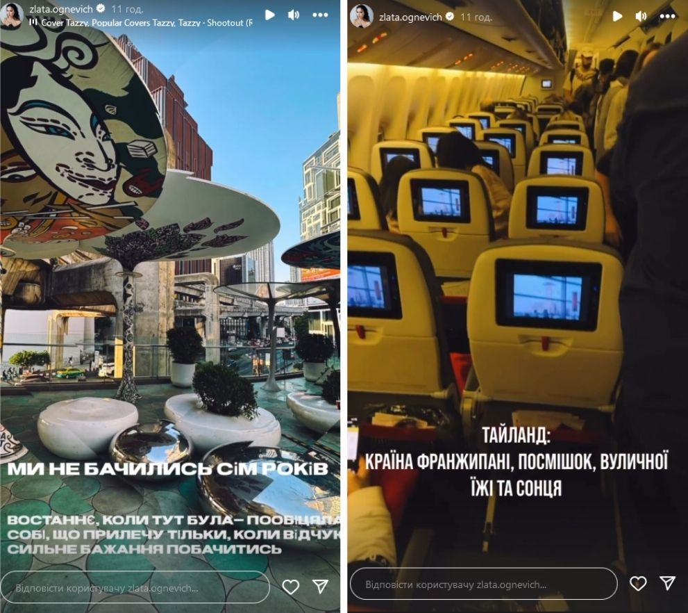 Злата Огнєвіч розповіла, що не була у Таїланді сім років. "Востаннє, коли я тут була - пообіцяла собі, що прилечу тільки, коли відчую сильне бажання побачитися", - поділилася вона з підписниками.