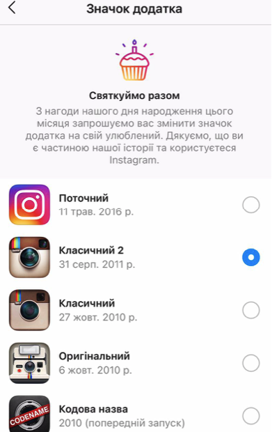Боротьба зі знущаннями - не єдина новинка в Instagram, якому в 2020 році виповнилося 10 років. На честь свята соціальна мережа пропонує змінити її іконку на класичний Polaroid, за яким сумвали користувачі. Щоб зробити це, слід оновити Instagram до актуальної версії, зайти в налаштування профілю, потягнути екрану вниз і відкрити кілька прихованих емодзі. Провівши по ним пальцем, ви відкриєте секретне меню, де можна обрати бажану іконку.