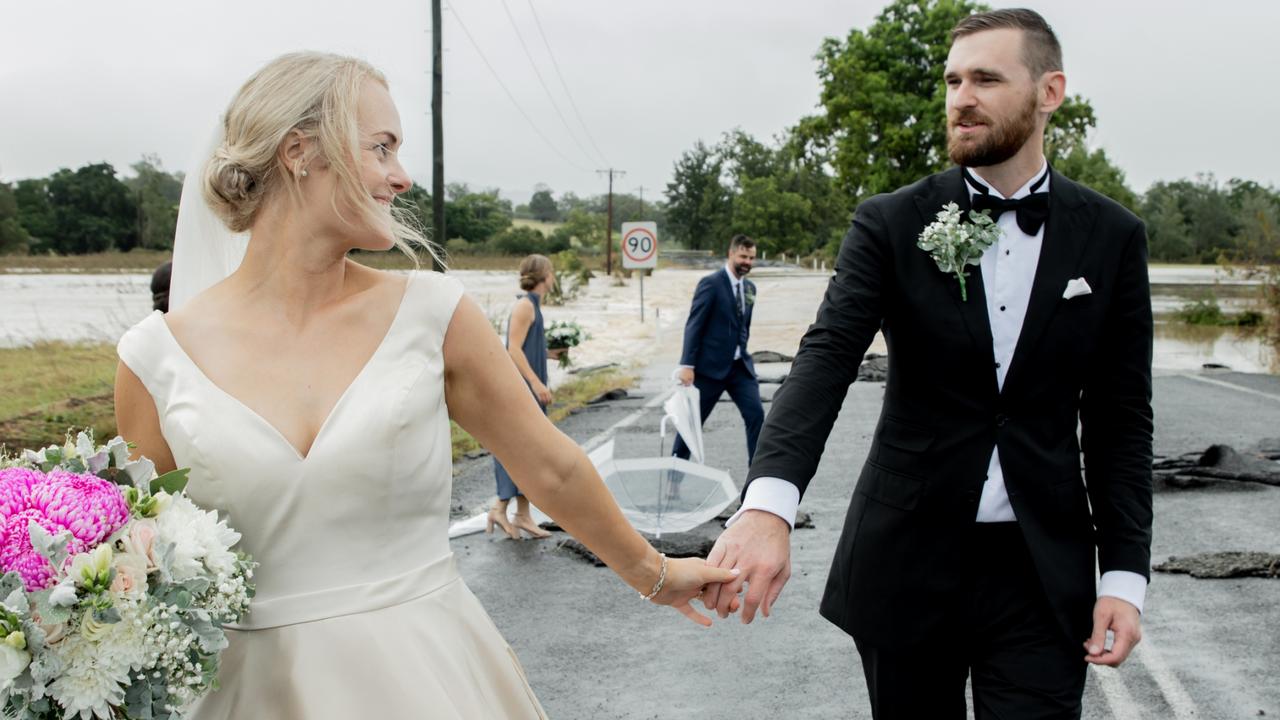Рекордні дощі і повені в Австралії не змогли зупинити весілля Кейт Фотерінгем і Вейна Белла, а їхні святкові фотографії стали вірусними в мережі, пише Daily Telegraph.