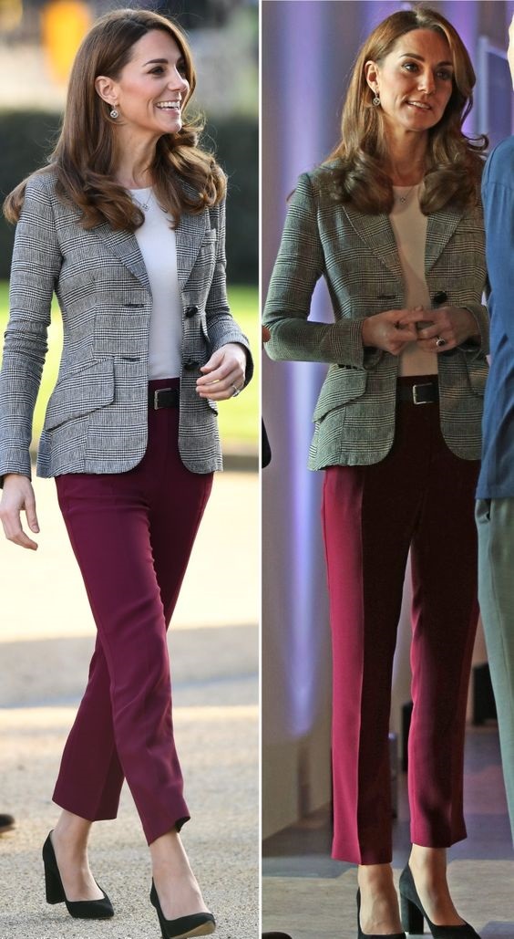 Строгий діловий образ Кейт Міддлтон вдало перетворила, надівши яскраві штани прямого крою і картатий піджак.