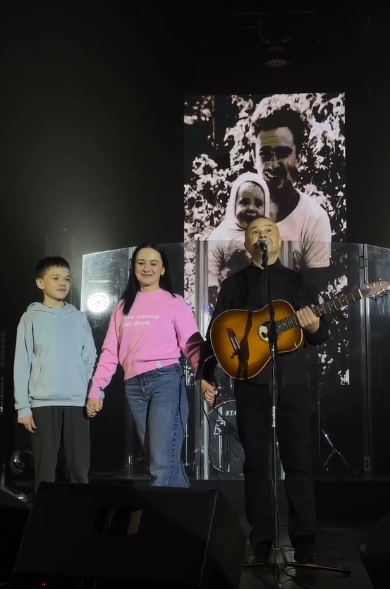 У цей момент на великому екрані за спиною співака з'явилася чорно-біла фотографія з маленькою Христиною на руках.