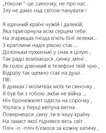 "Зараз я з сином і мамою в гостях у рідної сестри. Сестра живе в Ізраїлі вже 9 років. Наш тато, звісно, залишився в Україні. І займається тим, заради чого він живе. Він підтримує дух наших захисників, волонтерів, переселенців. В травні ми повертаємось в Україну, але швидше за все, не в Київ", - написала Катерина.