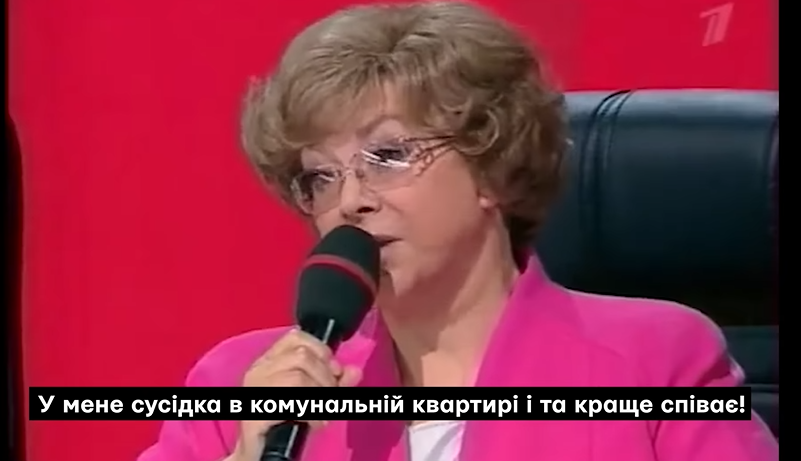 "Це була для них нормальна практика - відбирати всіляких російськомовних фріків з "Україна має талант" і кликати їх на свою "Минуту славы", щоб там буквально насміхатися над ними. Бо виступ Ніни - там ніщо інше як знущання. Про неї всі говорять так зневажливо, наче вона цього не чує", - каже Гордієнко.