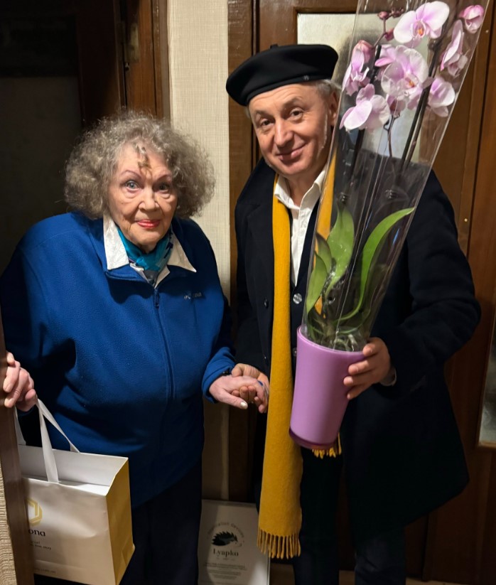 Так, на сторінці видавництва у соціальній мережі Х (раніше – Twitter) з'явився кадр, на якому чоловік позує разом із іменинницею. На фото можна побачити, як він тримає у руках величезну орхідею, а поруч із ним стоїть Ліна Василівна. У підписі до світлини письменник зазначив, що подарував поетесі квітку, яку підібрав під колір її книги "300 поезій".