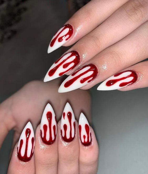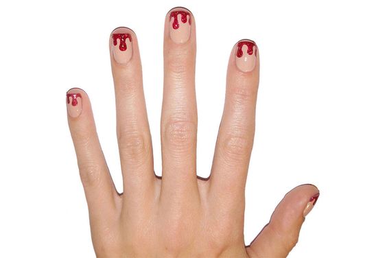 Ефектним буде манікюр з однотонним світлим покриттям і "потьоками" від крові. Він буде виглядати незвично як на коротких, так і на довгих нігтях.