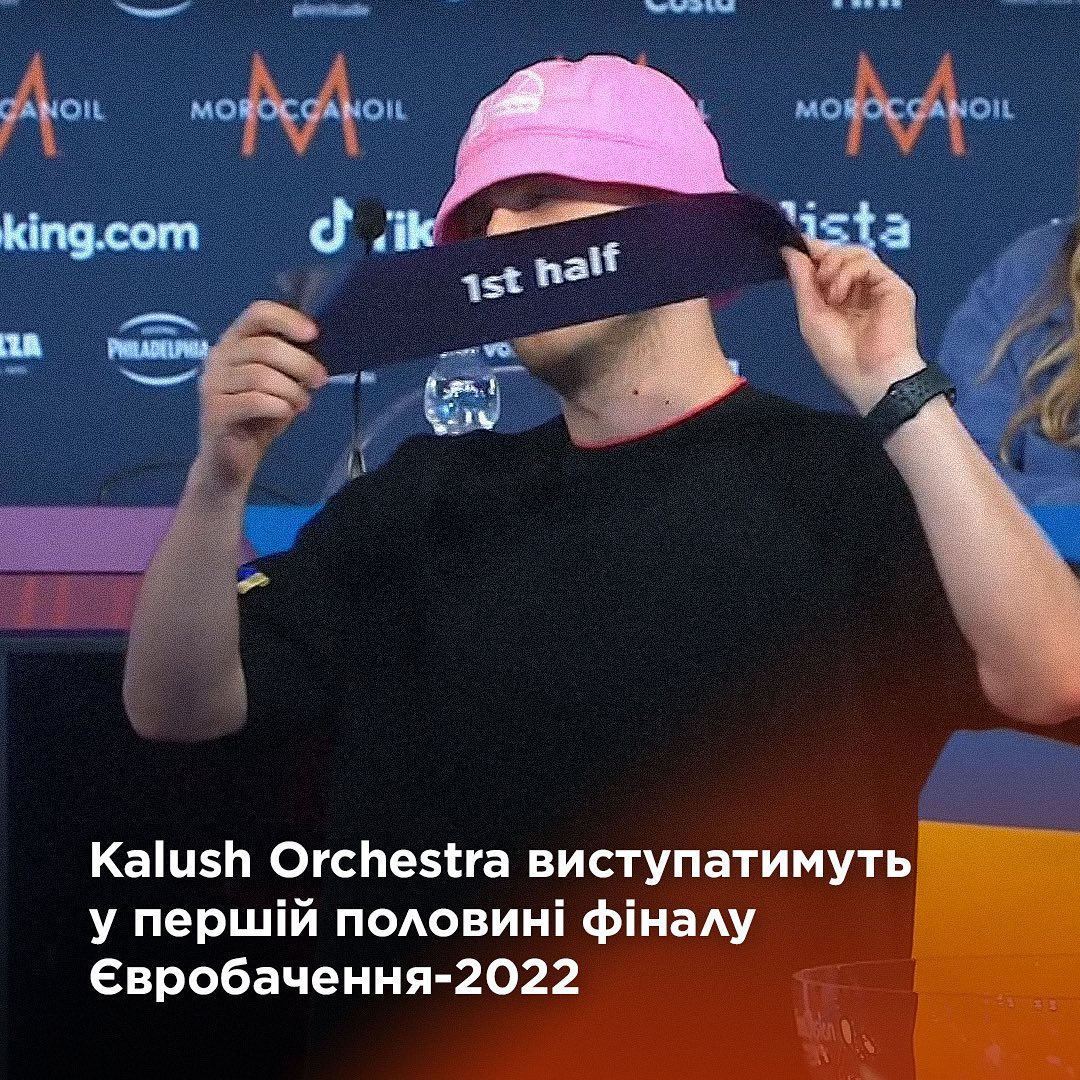 За результатами жеребкування, гурт Kalush Orchestra, який цього року представляє Україну, вийде на сцену в першій частині гранд-фіналу, 14 травня. Про це повідомили на сторінці "Суспільного" в Instagram. Загальне жеребкування, під час якого фіналісти дізнаються про порядковий номер виступу, відбудеться після другого півфіналу, 12 числа.