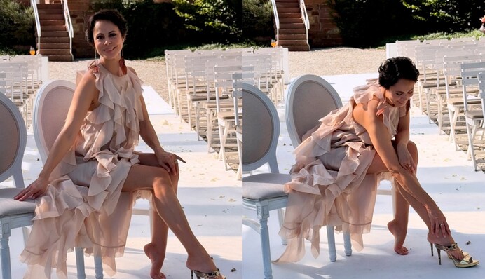 Модель, блогерка і коучка з йоги Наталія Єгорова оприлюднила низку світлин з весілля в Німеччині. Знаменитість попозувала у розкішній сукні відтінку шампані, продемонструвавши струнку фігуру та точені ніжки.