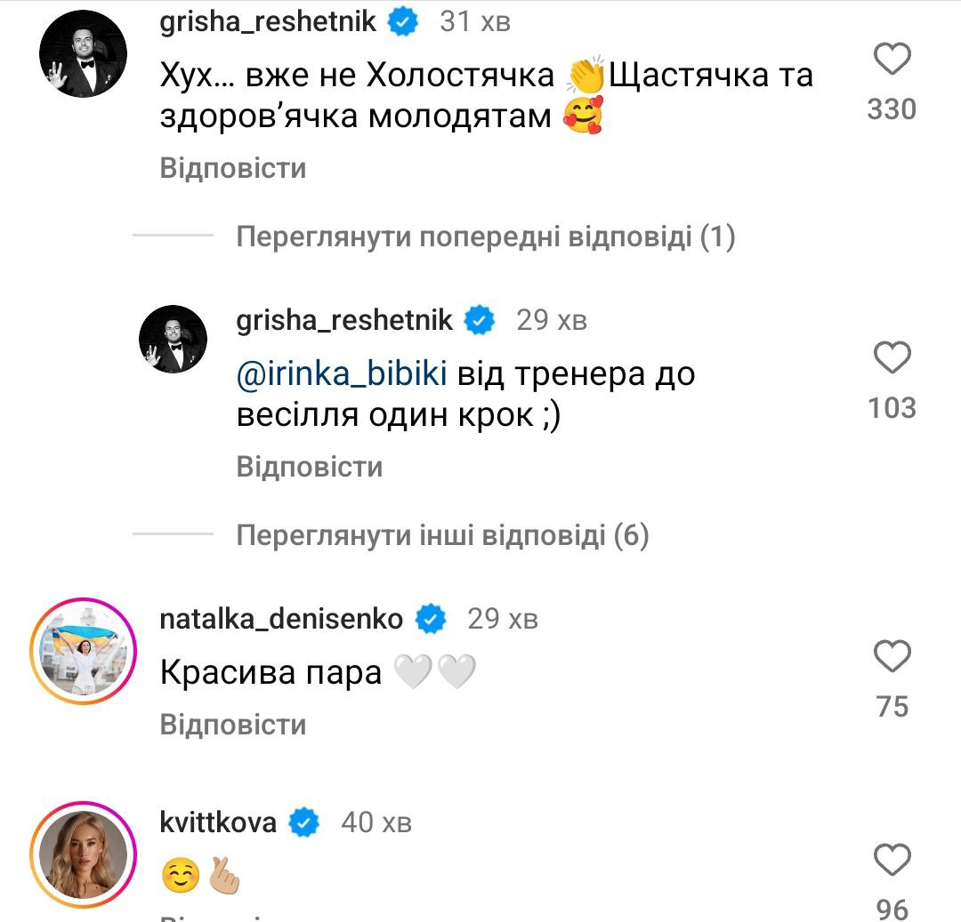 Свіжа публікація знаменитості в Instagram викликала бурхливу реакцію як серед її колег, так і серед шанувальників. Наталка Денисенко, Даша Квіткова, Григорій Решетнік та інші представники українського шоу-бізнесу, які особисто знають Ксенію, вітають її з приємними змінами в особистому житті. У коментарях під постом вони залишають теплі слова та навіть бажають "щастя і здоров'я молодятам".