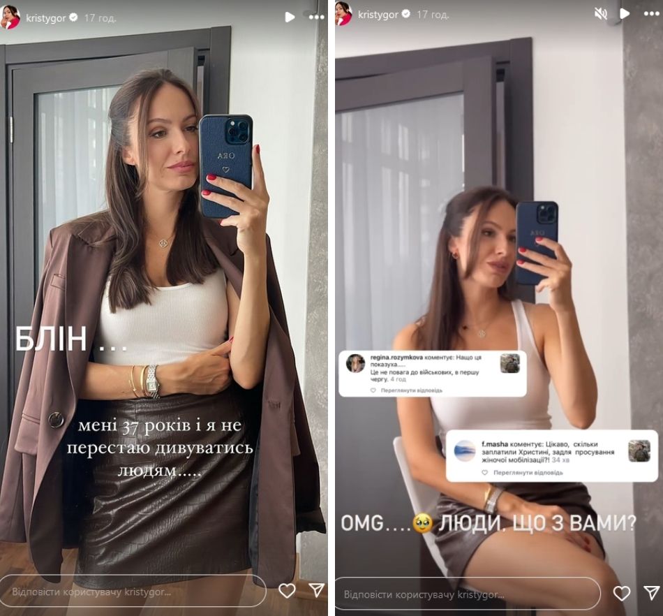 "А де ви в моєму пості побачили заклик? Чи це страх так спрацьовує. От смішно ж, бо я крім того, що пишу, що це дуже важко, і прошу дякувати захисникам, я не побачила нічого, але кожному своє", - відповіла Христина підписниці.