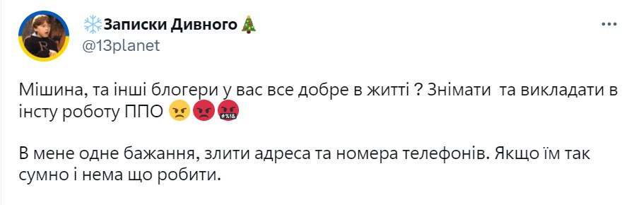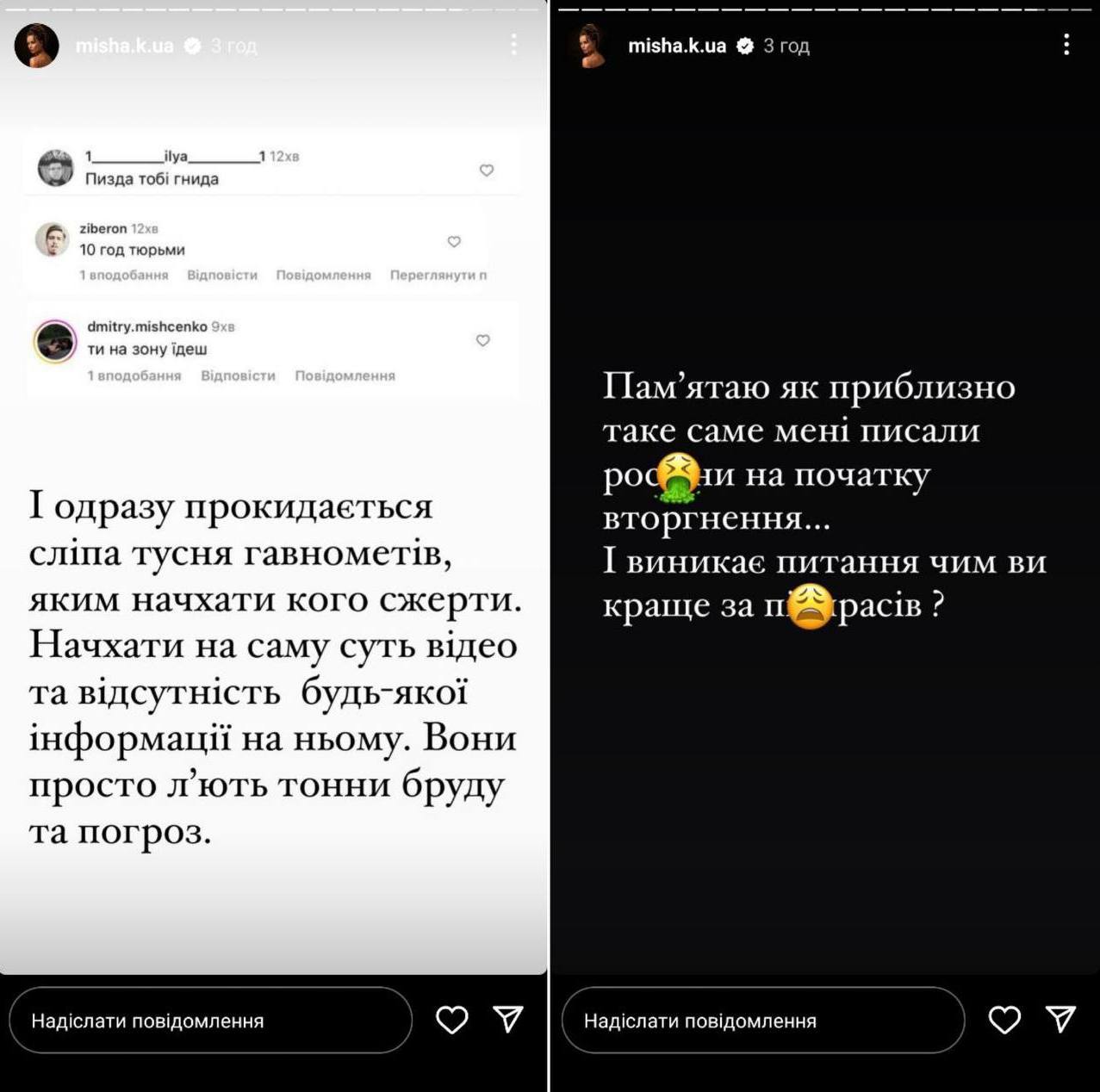 Мішина додала, що на неї накинулися ті люди, які не знаються на суті, а відразу пишуть погрози і поливають брудом. Таких українців вона порівняла з росіянами, які писали їй гнилі повідомлення на початку повномасштабного вторгнення РФ.