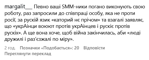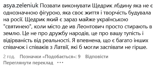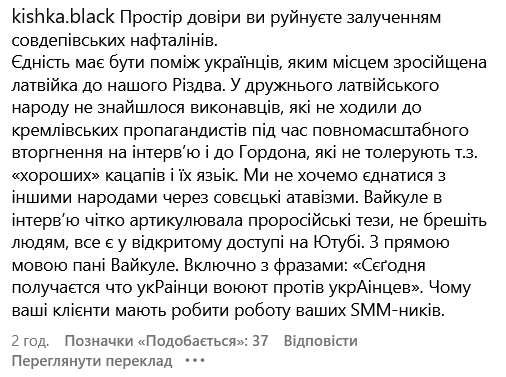Користувачі назвали співачку "неоднозначною фігурою", дорікнули за толерування російської мови та співчуття "хорошим росіянам", які виїхали з РФ. Українці також пригадали інтерв'ю Лайми, в якому вона заявляла, що "українці воюють проти українців, а росіяни - проти росіян".