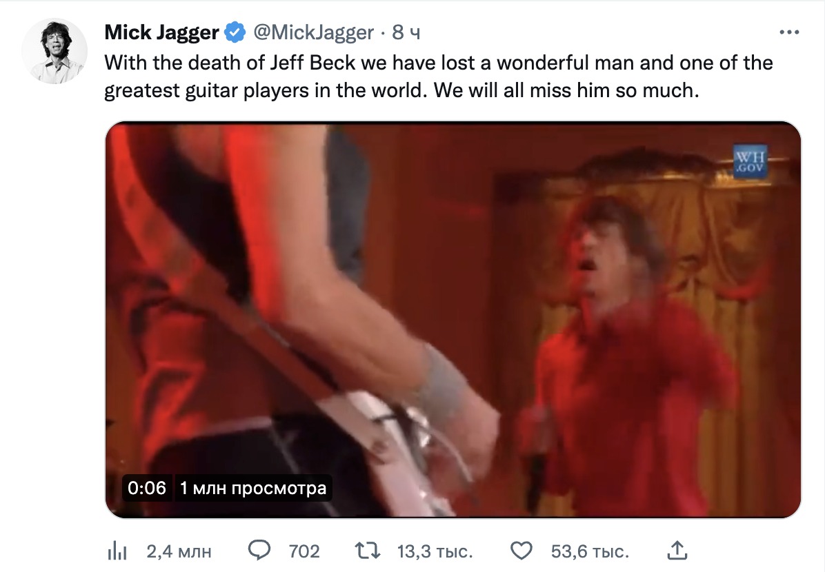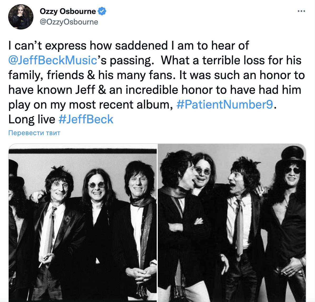 Також на смерть Бека відреагували Оззі Осборн та Мік Джаггер.